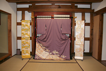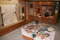 七五三から壮年層までの創作誂え・高級呉服、和装小物(風呂敷<芹沢けい介模様>・巾着・ショール・割烹着・創作手拭い) その他浴衣、祭り用袢纏等、和装全般のお品揃え。
