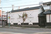 創業130年の老舗。今やこの町のシンボルにもなった立派な白い土蔵は大正14年の建立。